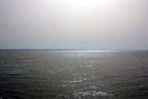 2. ガンビア川河口南岸 (バンジュール側) を遠望する。川幅が広くまるで大海のごとしである。 [拡大画像: x17089.jpg]