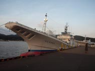 1. 夕闇が迫る中、出漁準備をする「十八号清龍丸」全景。 [拡大画像: x22858.jpg]