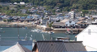市街の小高いところにある「鞆の浦歴史民族博物館」から見下ろすと、江戸時代にタイムスリップしたかのような風景が