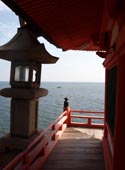朱塗りの観音堂は、海からの遠望は絶品で、観音堂の眼下に広がる燧灘(ひうちなだ)の展望もすばらしい。