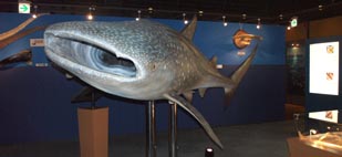 「このジンベエザメは青年期のジンベエザメをモデルにしたものです。ジンベエザメ(Whale Shark)