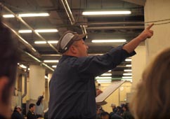 1. 威勢良く次々とマグロ冷凍魚体のセリがなされて行く。セリ落としに参加する卸業者は彼の手の指に示されるセリ値に