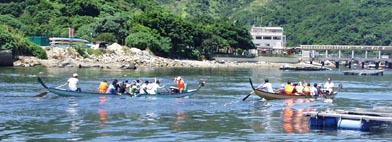ようになり、ついには2艇が接戦を繰り広げるまでに至った。陸で説明者の話を聞いていなかったドラマーは