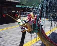 4. ボートの船首尾には、竜の頭と尾の飾りが施されている。 [拡大画像: x23121.jpg]
