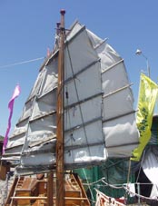 また、従来はかまぼこ形の低い屋根を備えていたのが多かったが、現在では背丈が高めのテント(天幕)屋根を有するサンパンが