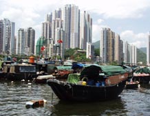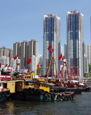 住宅ビルが林立すると共に、その小島との間に細長く伸びる狭水道には何百隻という漁船が停泊する。その船溜まりには香港らしい