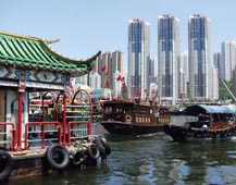 南シナ海の外海の風浪を遮蔽できる静穏な船溜まり風景がそこにある。アバディーン中心街と小島との間にはサンパンが