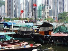渡し船(通い船)として行き来する。その船上人になって船溜まりの真っ只中を縫って行けばかつての香港の面影を偲ぶことができよう。 [2007.07][拡大画像: x23131.jpg]