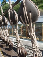 2. メインマスト静索の張りを調節する三つ目滑車。 [拡大画像: x23366.jpg]