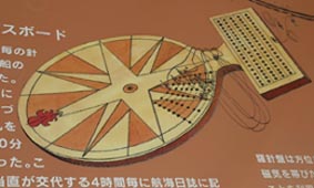 「船の針路と推定速力を記録する道具で、船の航跡を確認するのに使われた。船の針路は32方位に分割した