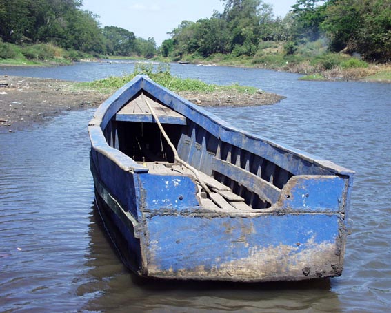 ニカラグア湖に注ぐマラカトーヤ川&平底舟 [中米ニカラグア]