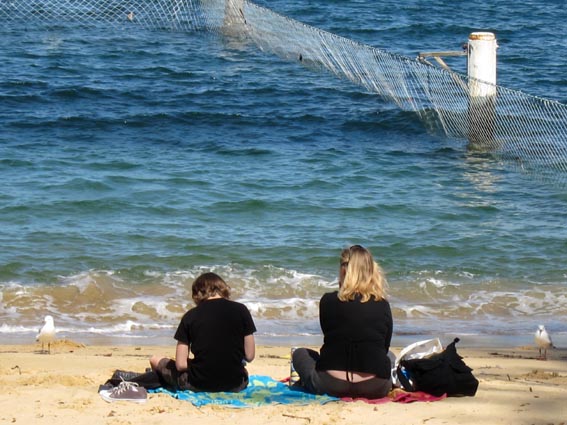 親子2人&カモメ2羽が憩う海辺風景 [オーストラリア・シドニー近郊マンリー]