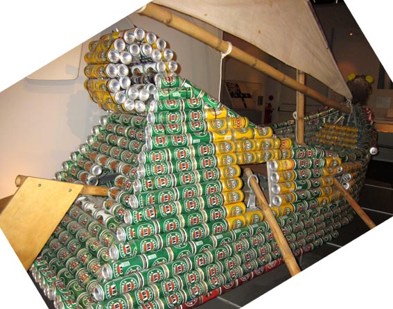 ビール空き缶製の手作りボート [オーストラリア国立海洋博物館・シドニー]