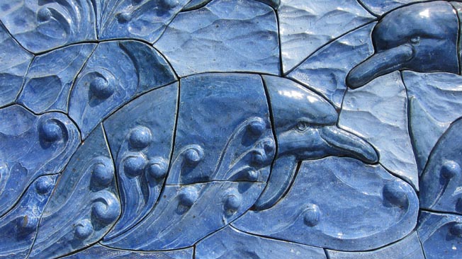 壁面セラミック・アート「碧海で戯れるイルカたち」