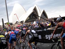 (シドニー湾・Sydney Harbourのこと)に面するオペラハウス傍の桟橋に沿ってスイムレース・スタート用ステージ&トランジショナル