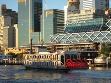 1. シドニーのダウンタウンの摩天楼を見上げながら、ダーリング・ハーバーを行く外輪船。 [拡大画像: x23474.jpg]
