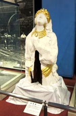 「船の科学館」に展示されている実物の船首像。その説明パネルには次のように記されている。