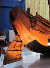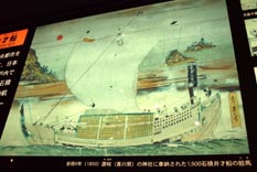 「千石船」(せんごくぶね)と呼ばれて全国の航路に就航し、江戸中期以後の商船は弁才船一色となりました。ここに展示した
