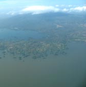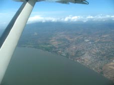 その後はずっと小一時間ニカラグア湖の上空を飛行する。右側には、淡水湖に浮かぶ島としては世界最大といわれるオモテペ島