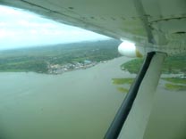 1. 眼下にサン・カルロスの市街地が、その右側にはサン・ファン川がニカラグア湖から流れ出るのが見える。 [拡大画像: x23965.jpg]