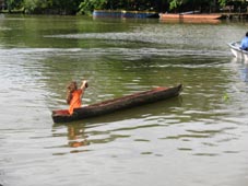 全長が5mほどの長い刳り抜き舟を真っ直ぐ漕ぎ進ませるのは、慣れるまで結構難しい。ハドルを右、左と適度に交互に漕ぎながら、