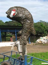 定期乗合船・水上バスの船着き場前にある広場で見つけたコンクリート製の巨大魚の