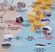 である。蔚山はかつて捕鯨の基地であった。今でもそのすぐ沖までコククジラ (克鯨・gray whale, grey whale) が回遊する。