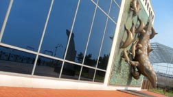 1. 「クジラ生態体験館」壁面の立体アート。 [拡大画像: x24001.jpg]