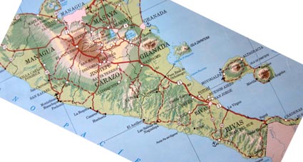 ニカラグアの首都マナグアから南東方向に (隣国コスタリカ方面に) ハイウェイ (国道2号線) をたどり、細長いニカラグア湖としばらく