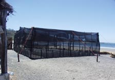 エル・アスティジェーロの白砂青松の長い砂浜はウミガメの繁殖地となっている。浜の一角に、画像に見るような卵の人工ふ化・繁殖場