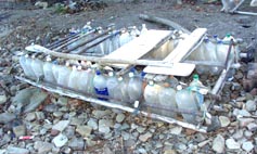 1. ペットボトルを束ねてできたボート、およびパドル。 [拡大画像: x24047.jpg]