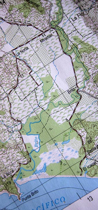 左に行けば、未来の「ニカラグア運河」の太平洋側のゲートウェイ付近に位置するブリット (Brito)、およびトーラ (Tola) へとつながる。