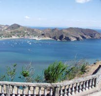 見下ろした海景である。画像に写る岩だらけの岬はプンタ・ラ・バランカ (Punta La Barranca、ラ・バランカ岬) という。