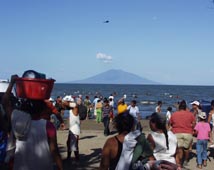 2. ニカラグア湖畔の町ラ・ビルヘン近くの海水浴場からオモテペ島コンセプシオン火山を遠望する。 [拡大画像: x24167.jpg]