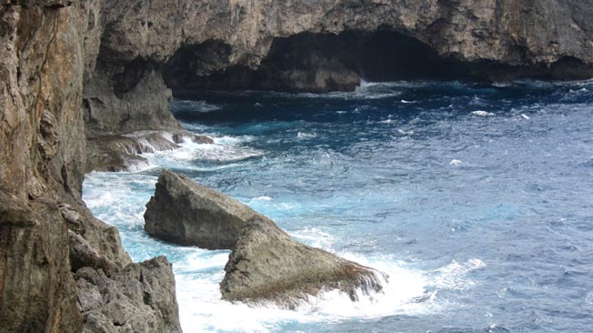 画像に写る、荒波の打ち寄せる断崖はかの有名な「バンザイ・クリフ」である。