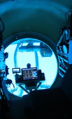 3. 潜水艦の艦首には総ガラス張りの半球状型コックピットがある。 [拡大画像: x24512.jpg]