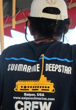 南洋の楽園サイパン島。はしけ船からイエローボディの観光潜水艦に跳び移る。司令塔の上には潜望鏡が立つ。