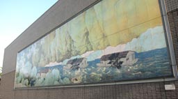 1. 本館側壁の大陶板画「行く春」。 [拡大画像: x24436.jpg]