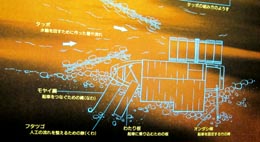 4. 船車の繋留の概略図である。船車の左上の矢印部分辺りにタッポがある。