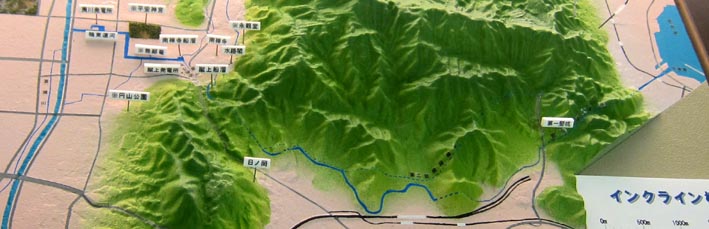 1. 琵琶湖疏水の立体地図。 [拡大画像: x24470.jpg][拡大画像: x24474.jpg: 模型の範囲]