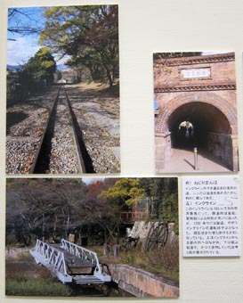 展示の傍に建つ案内板には、「インクライン (傾斜鉄道)」と題して次のように記されている。