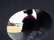 3. 「少年スパイダーマン」。遊び疲れたのか、沖の船を見ながらひと休み。 [拡大画像: x24889.jpg]