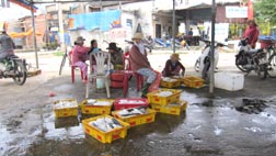 早朝には川魚・海魚の活発な取り引きが見られるという。