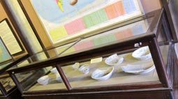 4. 博物館の玄関ホール風景。陳列棚 (右側) の拡大画像が次の画像5である。 [拡大画像: x25030.jpg]