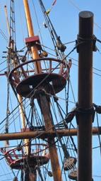 * コールデン・ハインド号の主要目: 全長:36.5m、全幅:6.7m、メインマスト高い:27m、帆面積:386m2、排水量:305トン、