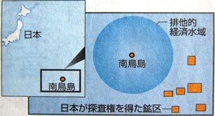 太平洋・南鳥島(画像2・3)の南東600kmほどの公海上にある、3000km2におよぶ6つの鉱区(画像4)での探査権(15年間)を、