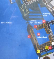 * ドック周辺概略図。図の上方のドックがカニング・ドック、下方のそれがアルバート・ドック (Albert Dock)。
