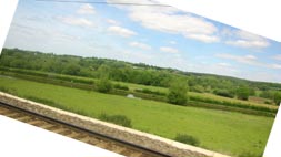 画像は、リバプールからロンドンに向かう列車からの車窓風景である。列車は緩やかな起伏が続く田園地帯