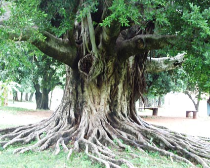 巨木 Un gran arbolパラグアイにもこんな巨木があるよ。まさに、芸術的根っこだ(アスンシオン市内の植物園Jardín Botánicoにて)。 かつて亜熱帯樹林に覆われていたパラグアイ国土も、大豆生産の拡大などのためにつぎつぎ伐採、耕地化された。 森林は急速に失われつつあり、この先がとても心配される。