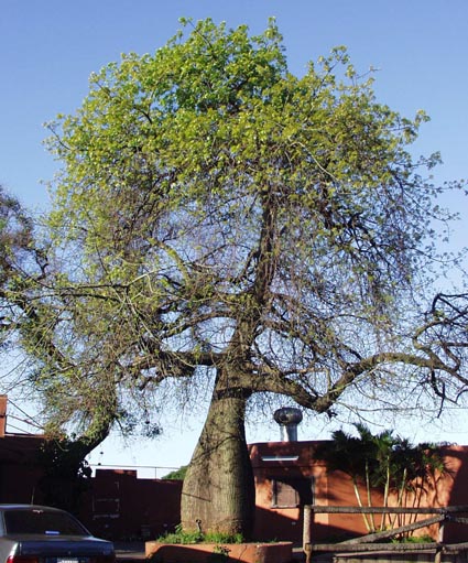 ボラーチョの木(1) Arbol de "Borracho" en Chaco「ボラーチョ(borracho)」とはスペイン語で「酔っぱらった」という意味。 要するに「酔っぱらいの木」というわけ。 ある夜酒に酔った男がこの「ボラーチョの木」に抱きついて酔いをさましていた。 そこにある女の子が通りかかる。 そしてそれを見ながら「酔っぱらいの木に酔っぱらいが抱きついている」と、小ばかにしたわけである。 バカにされた男はやりかえした。 「俺は朝になればもとに戻るが、あんたの顔は一生直らない。どちらがかわいそうなのか、 あんたは分かってるのか?」 そんなジョークがささやかれる木が、パラグアイ西部のチャコ地方にはけっこう見られるのである。 (本当にボラーチョという木なの? 因みにこれはアルゼンチンでのジョークですが・・・。)